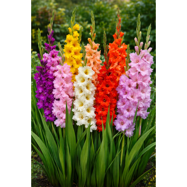 Įspūdingas įvairiaspalvių kardelių mišinys. Aukšti, statūs žiedynai išsiskiria sodriomis violetinėmis, rožinėmis, baltomis, geltonomis, oranžinėmis ir raudonomis spalvomis. Puikiai tinka tiek gėlynams, tiek skynimui – ilgai išlieka dekoratyvūs vazose.