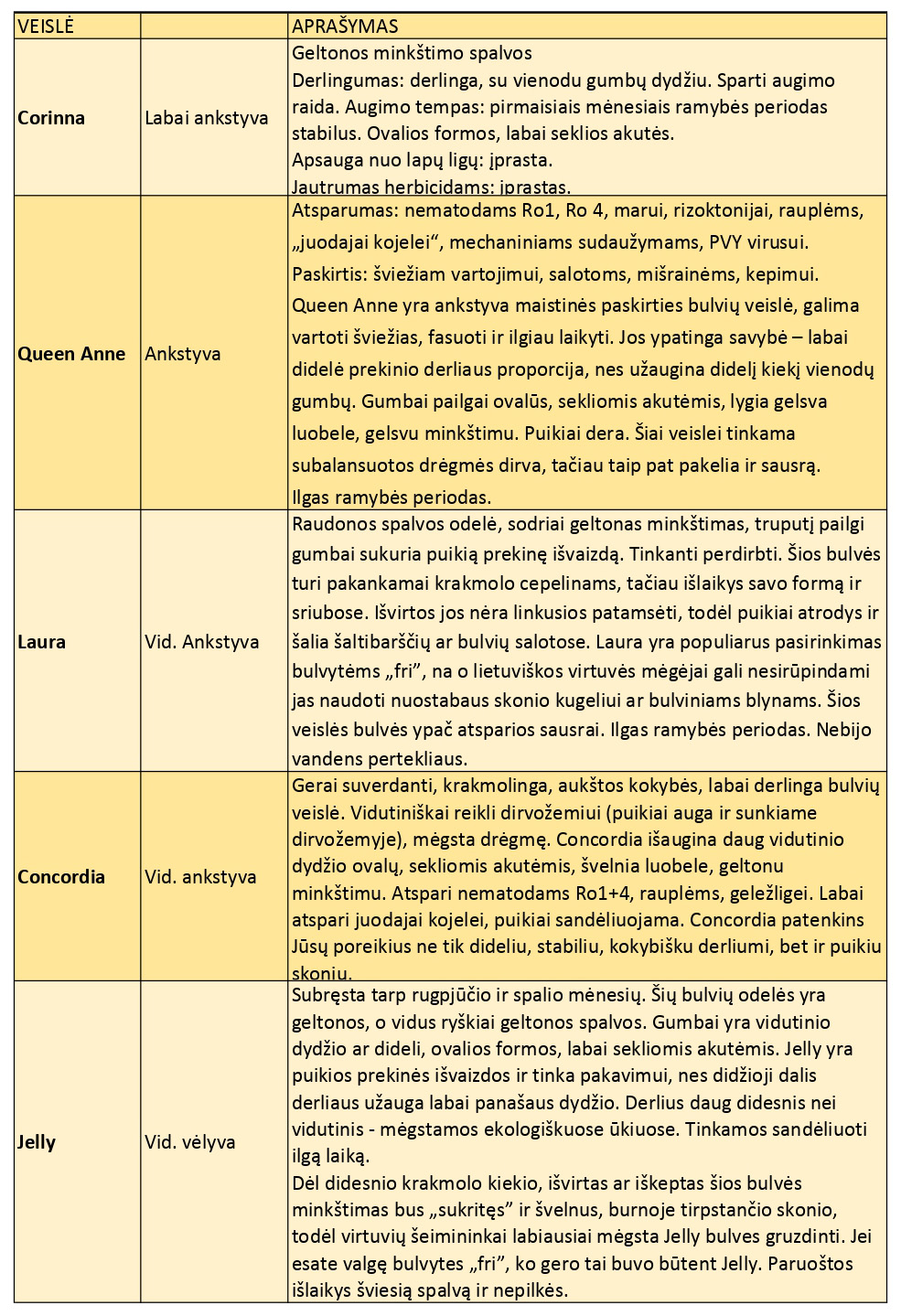 Derlingumas: Labai derlinga. Puikiai laikosi ilgai sandėliuojama.