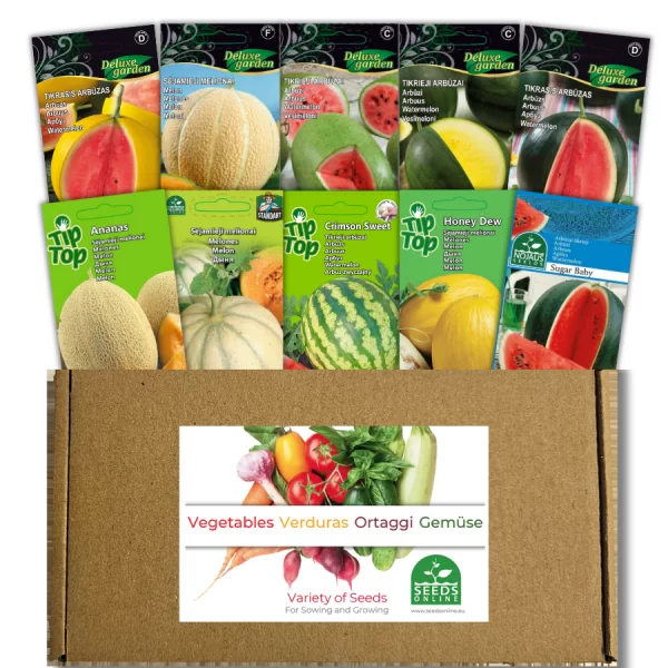 Šiame rinkinyje rasite net 10 skirtingų arbūzų ir melionų veislių – nuo klasikinių iki egzotiškesnių skonių ir spalvų. Puiki proga išbandyti įvairius vaisius ir atrasti savo mėgstamiausią.