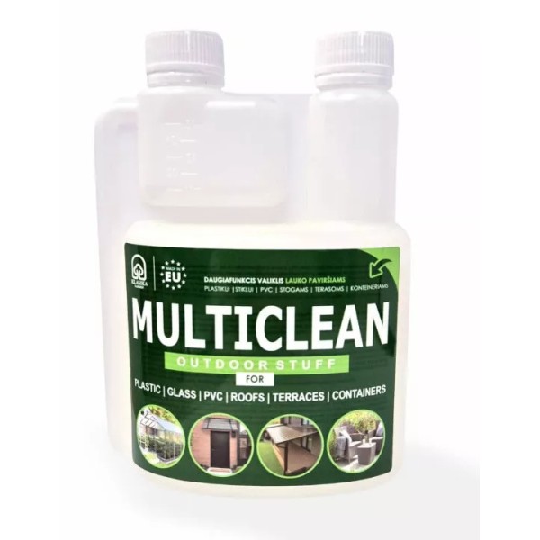 „MULTICLEAN“ sukurtas tam, kad nereikėtų naudoti kelių skirtingų valiklių. Viena priemone lengvai, greitai ir veiksmingai pasirūpinsite visa lauko aplinka.